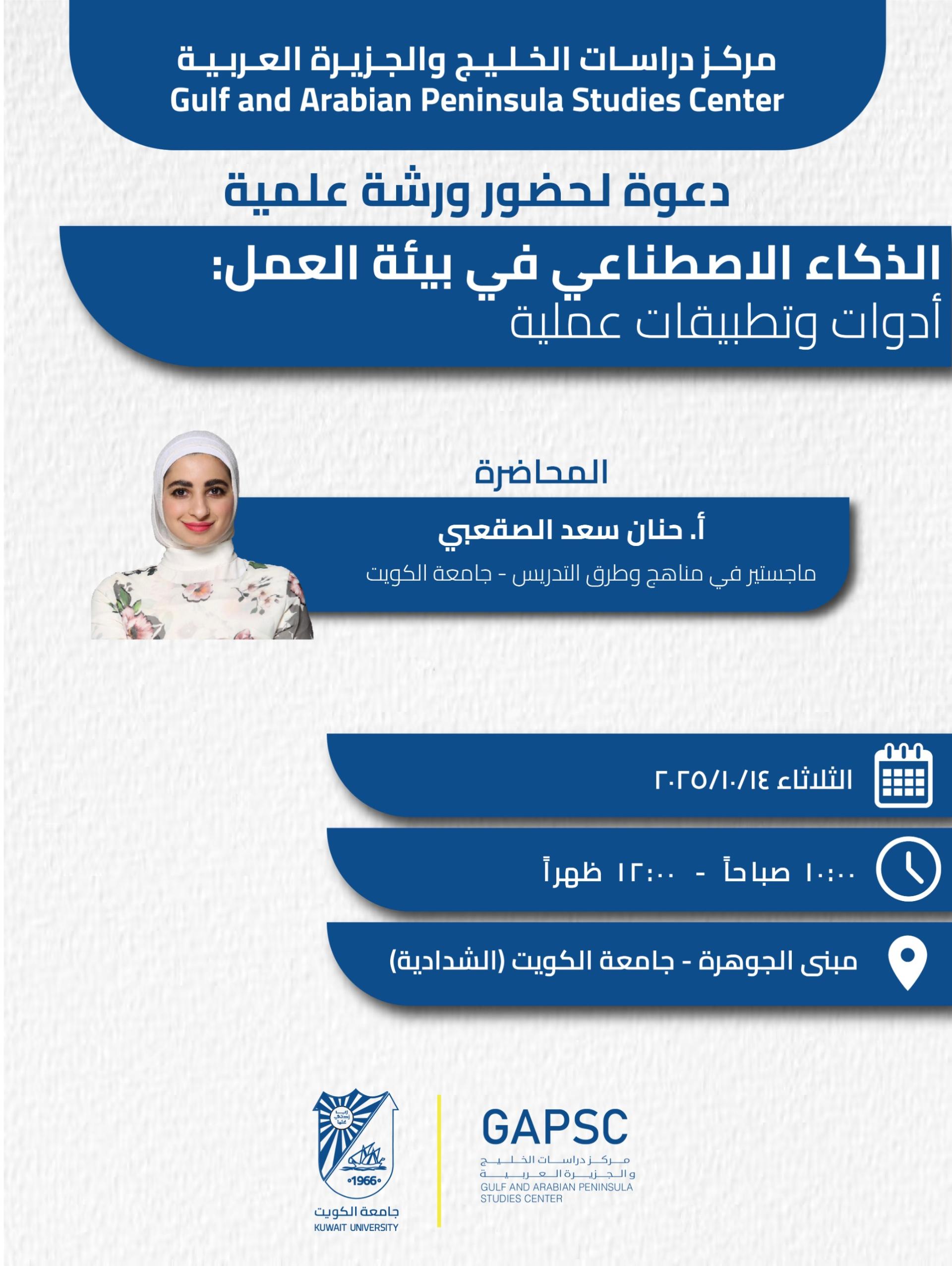 Gulf and Arabian Peninsula Studies Center is pleased to invite you to attend an educational lecture : Artificial Intelligence (AI) in the Workplace (Practical Tools and Applications)